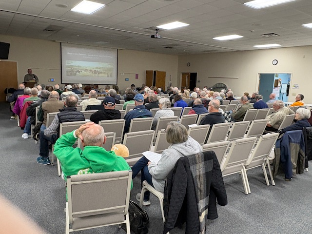 A photo of the audience at the Cumberland Mountain CWRT– big group– photo doesn’t do it justice.